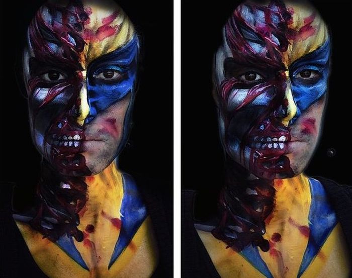 Българският народ е луд по Хелоуин, брато. Нямаме търпение да дойде есента, за да се направим на вещици, пирати и пияници. Няколко месеца преди този празник, ние вече сме готови с много идеи за маскиране. В случая ще ти покажем едно изкуство – face art. Рисуват ти по лицето, за да имаш по-интересна визия или поне да имаш по-голям шанс с мацките. В действителност можеш да спестиш много пари така, ако си грозен и си планувал пластична операция. Замисли се, брато!