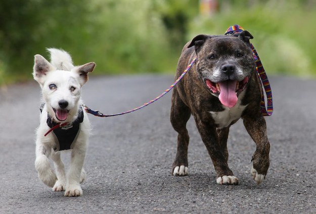 Джак Ръсел териерът Глен е напълно сляп, брато. Тъжна история, но какво да се прави… Той ходи навсякъде с друго куче, което му е водач – Бъз, Стафордширски бултериер.