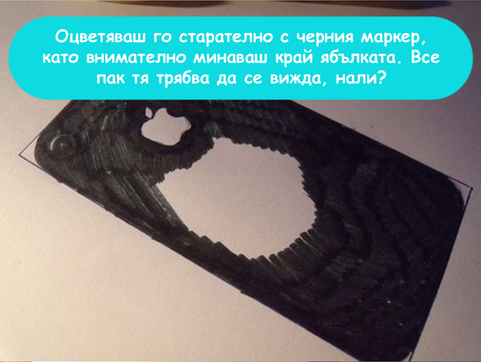 Предлагаме ти 8 лесни стъпки как да си направиш снимка с iPhone в кенефа, като ще са ти нужни само химикалка, ножица, бял лист и черен маркер. Направи го и след това ни изпрати крайния резултат, който със сигурност ще ти краси профила във фейсбук.
