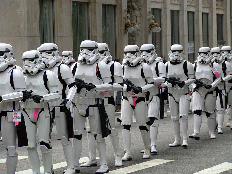 - Дарт Вейдър е тъпа блондинка с розов костюм и вместо да диша тежко, тя пъшка любовно и стене.