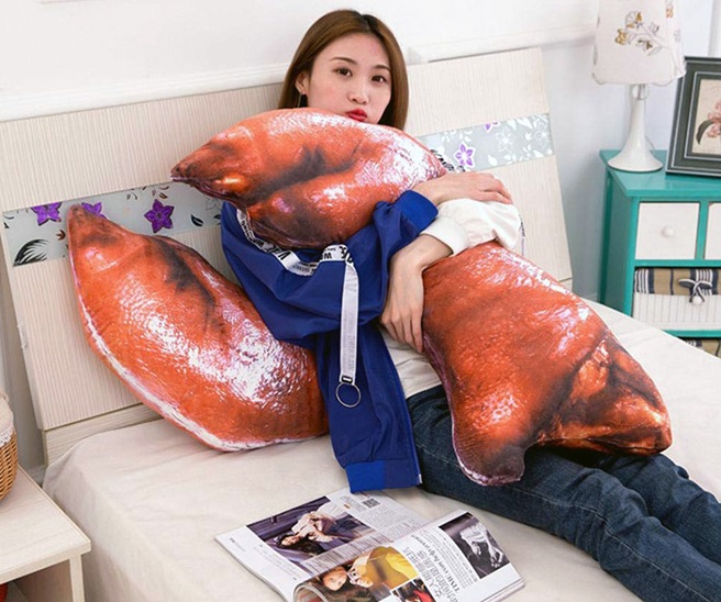 “Ако сте гладни и уморени, може да си починете върху тази мека възглавница за тяло”, пишат продавачите.