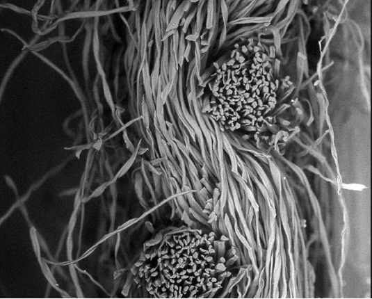 Що се отнася до памука, вижте отблизо как влакната се извиват и огъват, увеличавайки размера на повърхността, към която аерозолите на вируса могат да се захванат. Памукът обича водата, абсорбира дишането и създава влажна среда, което пък създава по-голямо пространство като капан за КОВИД-МОВИД. Станахме и ние учени, братче.
