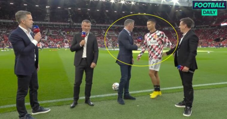 Cristiano Ronaldo blanking Jamie Carragher and gatecrashing Monday Night Football. 😂👀