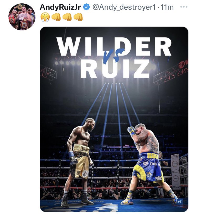 Боксовият ас Анди Руис, победил веднъж Джошуа, използва Twitter, за да потвърди официално желанието си да се срещне на ринга с Дионтей Уайлдър.