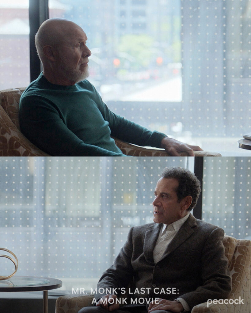 Спечелилият Еми сериал проследява Ейдриън Монк, бивш виден детектив от полицейското управление в Сан Франциско, който продължава да разкрива престъпления, докато се бори с обсесивно-компулсивно разстройство, предизвикано от неразкритото убийство на жена му. Драмата продължи осем сезона, между 2002 и 2008 г., по USA Network и спечели осем награди Еми, един Златен глобус и две награди на Гилдията на актьорите.